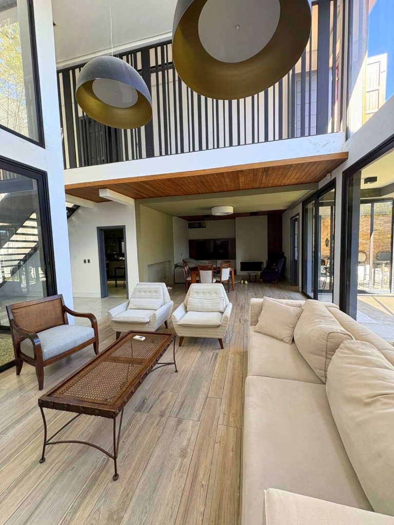 SOBRADO ZONA NORTE-Loteamento Imigrantes, próxima à Av. Dom Joaquim. O imóvel se destaca por amplo hall de entrada com pé-direito duplo, sala de estar, escritório no térreo, lavabo, sala de TV com lareira e jardim de inverno. Conta ainda com espaço gourmet com churrasqueira, banheiro e vista para o pátio. Na área íntima, possui três dormitórios, sendo uma suíte master com closet e banheira, além de terraço com acesso ao pátio. Dispõe de garagem coberta e fechada para dois carros. Permanecem no imóvel os móveis planejados da cozinha, do quarto de casal e do quarto rosa, além de três splits nos dormitórios e um split maior na sala. O pátio é amplo, com paisagismo, piscina de concreto com revestimento cerâmico (adulto e infantil) e quiosque ao lado da área da piscina. Código C307